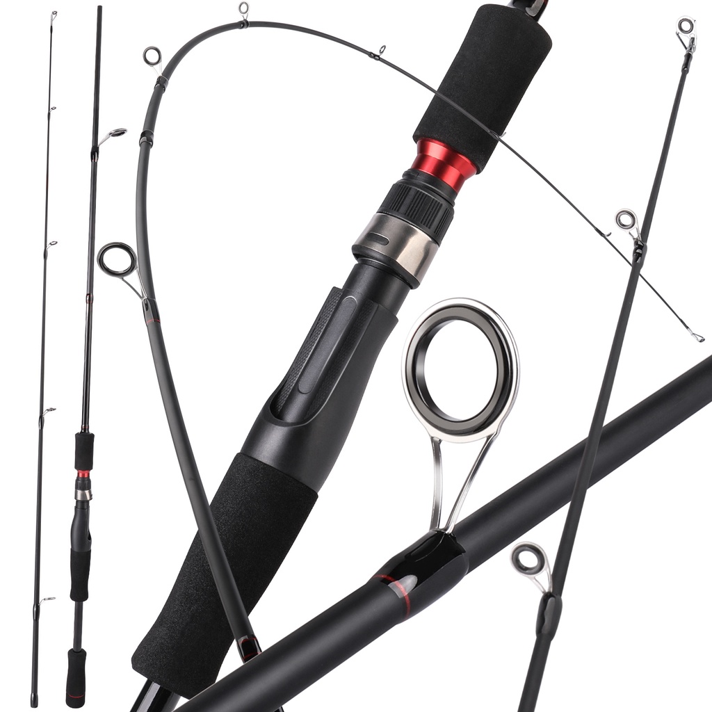 Tongkat pancing Jenis: 2 Bagian Pancing Warna: Hitam dan Merah Panjang: 1.8m/2.1m Pegangan: Pegangan EVA Pegangan non-slip, nyaman dan tahan lama