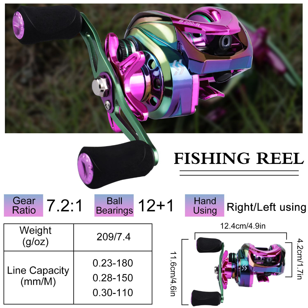 Features: Gear Ratio: 7.2:1 Ball Bearing: 12+1BB Weigh : 209g /7.4oz Max Drag:10kg Line Capacity (mm/m): 0.23/180 0.28/150 0.30/110 Suitable for: Left Hand / Right Hand