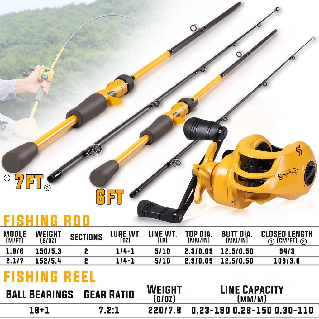 Olahraga & Outdoor > Alat Pancing > Joran & Gulungan Pancing > Joran Pancing Set Portable 1.8m 2.1m 6ft / 7ft Bahan Karbon Power Dengan 2 Bagian Handle EVA Fishing Rod 18+1 7.2:1 High Speed Max Drag 10kg