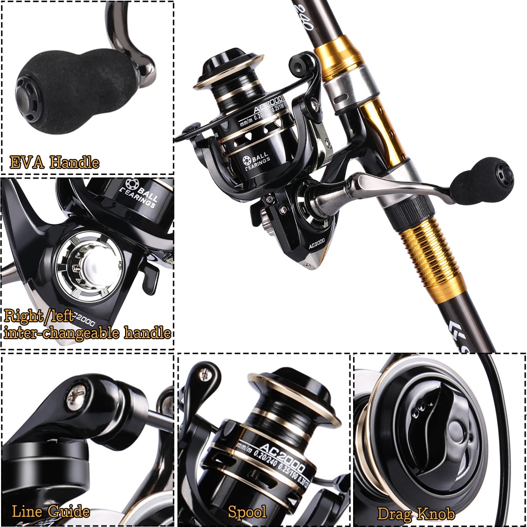 Detail joran set 2.1-3.6m set pancing berkualitas tinggi and 2000-3000 reel pancing fishing set and senar pancing
