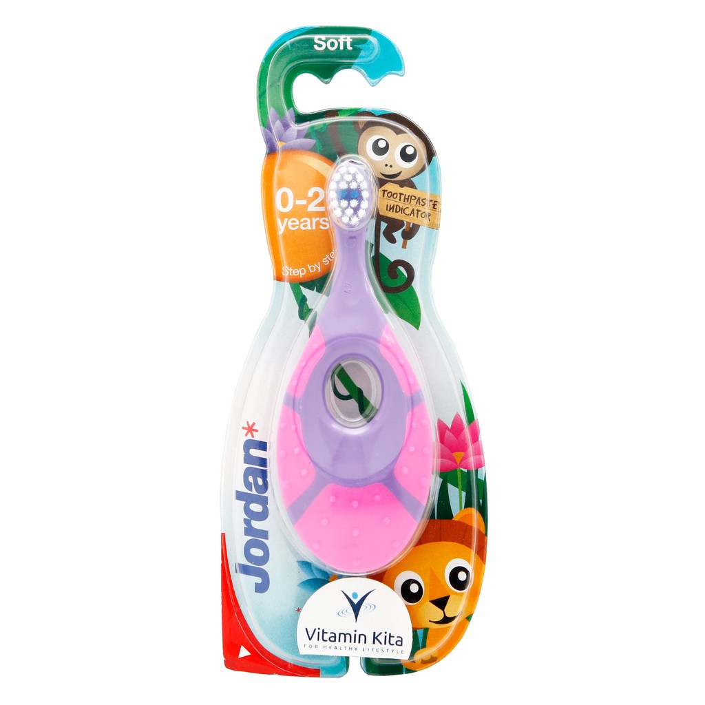 JORDAN KIDS STEP 1 (0-2 YEARS) SOFT Sikat gigi untuk bayi 0-2 tahun dengan bulu sikat yang sangat lembut yang dapat membersihkan dan menjangkau sampai kebelakang gigi. Gagangnya telah didesain sedemikian rupa agar dapat digigit dan menstimulasi pertumbuhan gigi bayi. Tersedia dalam beberapa pilihan warna.