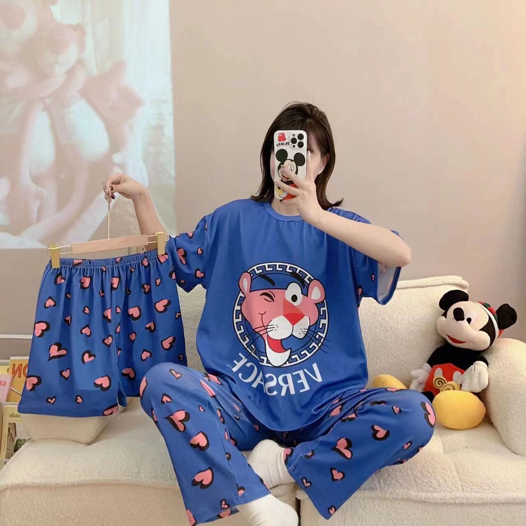 Baju Tidur Import 3 in 1 sudah termasuk 1 Baju Lengan Pendek, 1 Celana Pendek dan 1 Celana Panjang