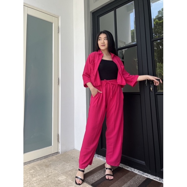 JOSHIN Alice oneset crinkle cullote long pants - setelan kemeja crop kulot panjang
