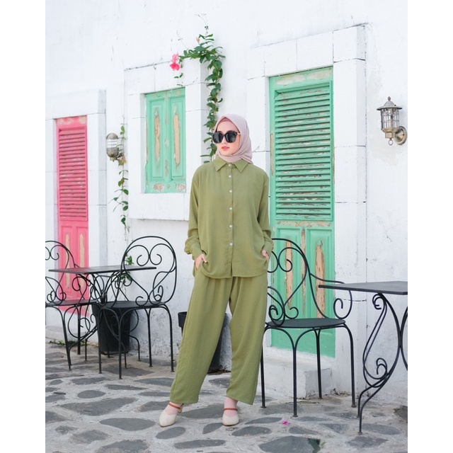 Pakaian Wanita > Set > Set Wanita > JOSHIN Nafia Oneset Crinkle Airflow - Setelan Kemeja Crinkle Baju Lebaran