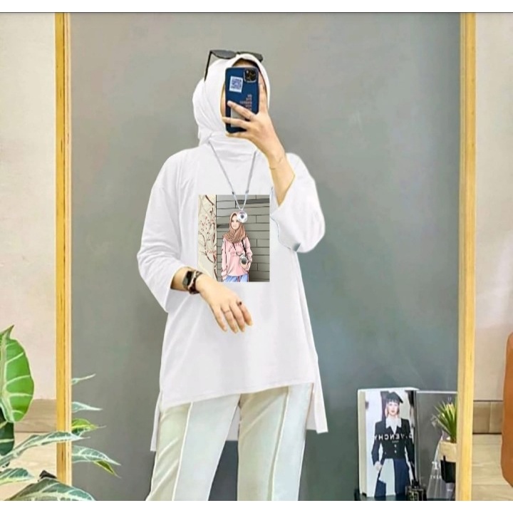 DETAIL PRODUK TUNIK HIJAB PHOTOGRAFER DAN SAKURA BAHAN BABYTERRY LINGKAR DADA 116CM PANJANG DEPAN 70CM PANJANG BELAKANG 82CM PANJANG LENGAN 40CM LINGKAR LENGAN 38CM MOTIF GAMBAR DTF PRINTING FIT XL TO XXL