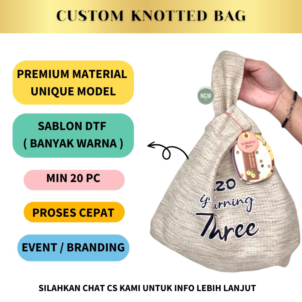 JOY KNOTTED BAG CUSTOM SABLON DTF souvenir gift tas hampers ulang tahun event min 20pc
