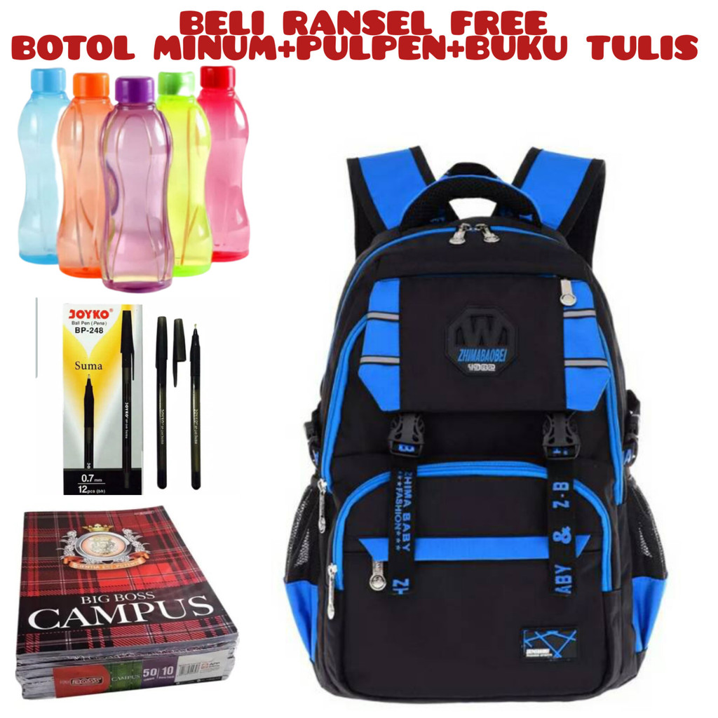 Detail JS_ Beli 1 Dapat 4-Tas Ransel Sekolah Anak Laki-laki/Perempuan Backpack Tas Laptop Acer Unisex Tas Sekolah SD/SMP/KULIAH Beli Ransel Free Botol Minum+Pulpen+Buku Tulis