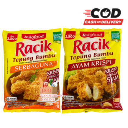 Indofood Racik Tepung Bumbu tersedia 2 varian yaitu Serbaguna Ayam Krispi Berat 75gr - setara untuk ayam 250gr