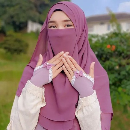Bismillah.... kalau liat handsock yang satu ini, yang kepikir pastinya.... cute, lucu, maniez.... yes.... new comer kali ini merupakan pengembangan dari anindya renda, cuma pakai aplikasi pita plus yang specialnya ada bandul mutiara sintetisnya. jadinya kebangetan manieznya panjang 30 cm ada karet di bagian atas bahan ITY korea jersey