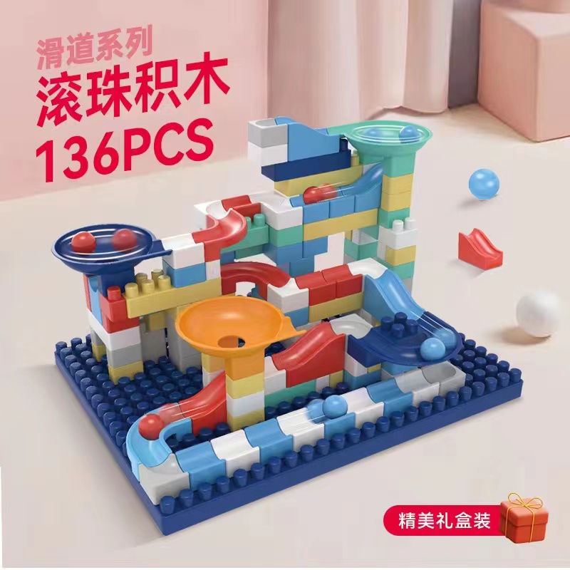 Hobi & Koleksi > Mainan & Games > Mainan Balok > [JUALSEMUA18](6620)136pcs Mainan Balok Susun Bola Dan Rail Dengan Kotak Penyimpanan Dan Tutup Papan Lego / Brick With Ball And Track Adventure / Balok Susun Adventure