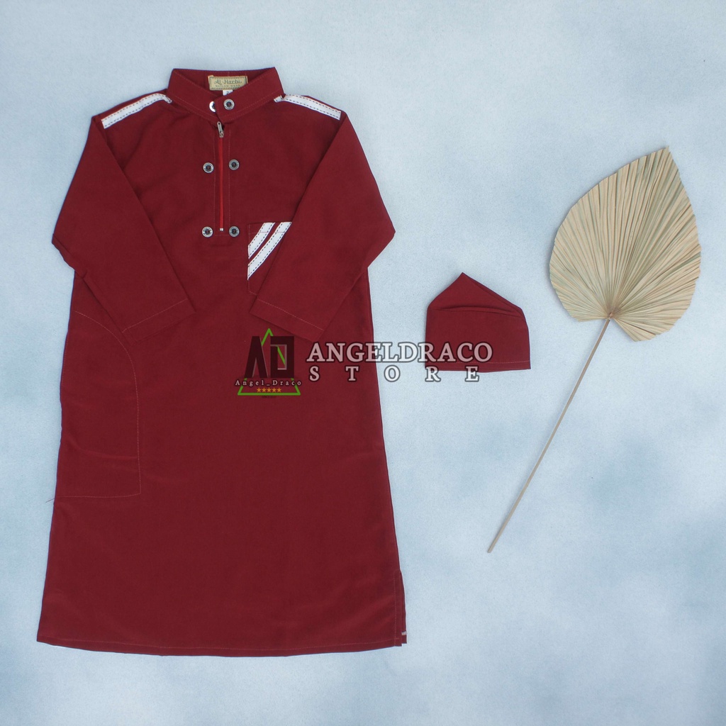 Detail Jubah Gamis Anak Laki Laki Marun 0-15 Tahun