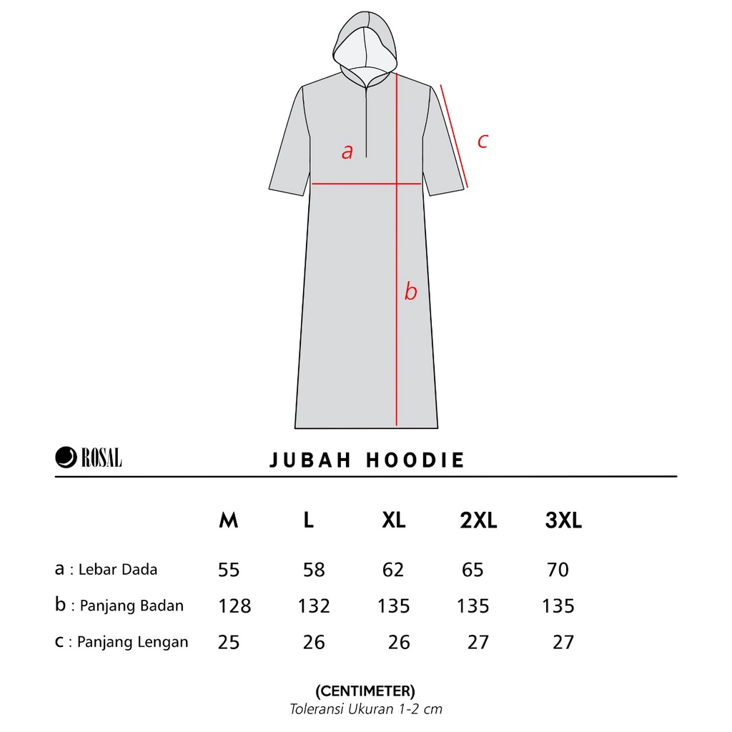 Kembali hadir varian jubah simpel ala Rosal. Inilah Jubah Hoodie, jubah dengan lengan pendek dan menggunakan hoodie. Terdapat saku kiri dan kanan. Pada bagian dada terdapat resleting yang menambah kesan simple produk ini.