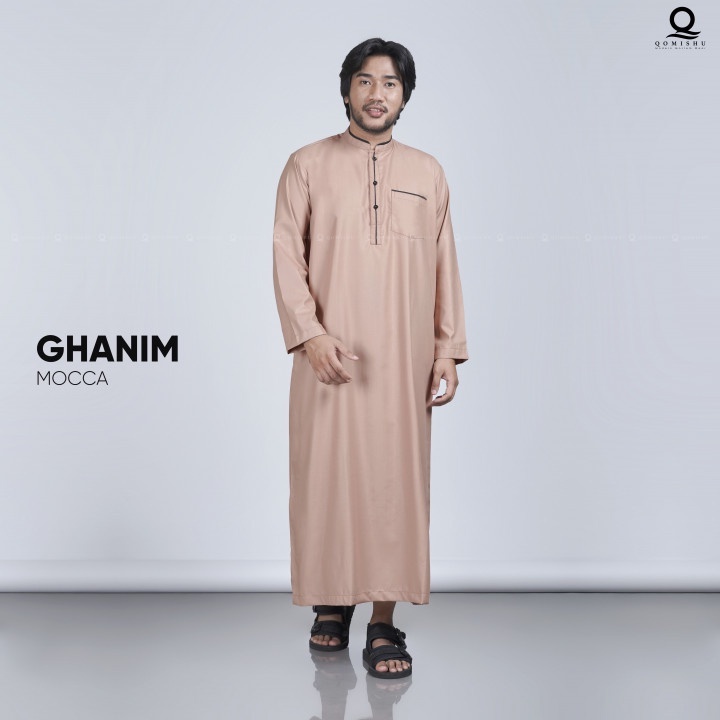 Detail Jubah Pria Ghanim Qomishu Bahan Katun Toyobo Premium