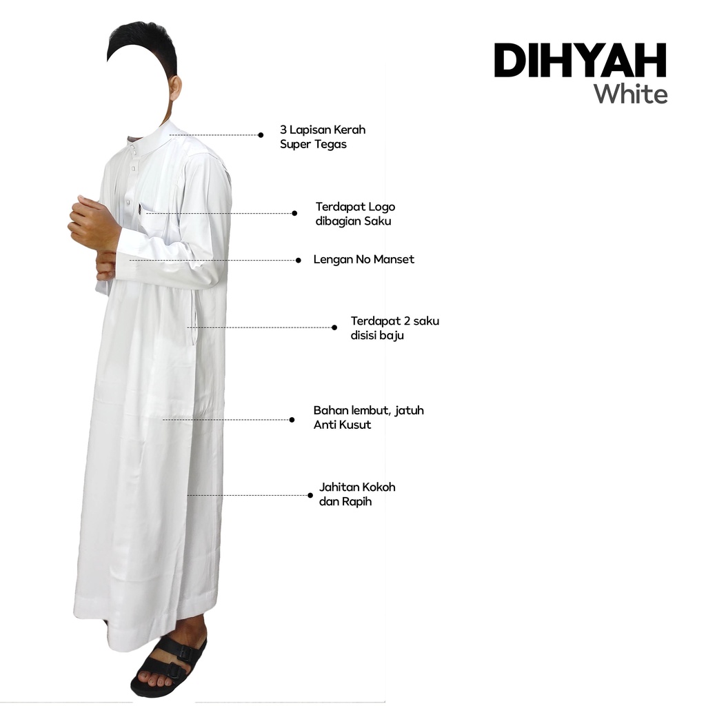 Detail Jubah Pria Lengan Panjang Non Manset Polos Gamis Dihyah Premium Thobe Bahan Polyester Tesla