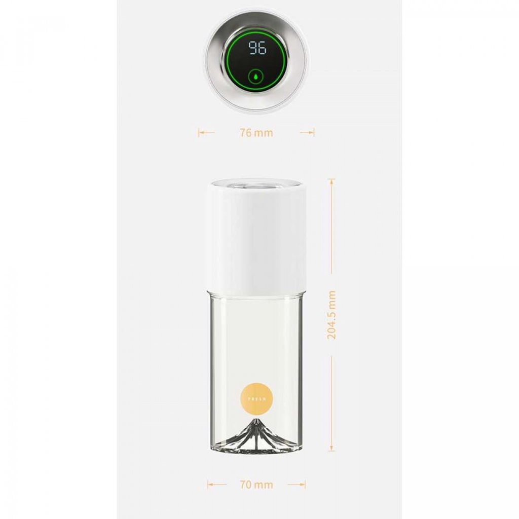 Spesifikasi Kekuatan Motor 20.000 RPM Voltase 5 V, 1 A Daya / Power 50 W Material ABS & Stainless Steel 304 Dimensi Tinggi: 204.5 mm Diameter Atas: 76 mm Diameter Bawah: 70 mm Kapasitas Juicer: 400 ml Kapasitas Baterai: 1400 mAh Lama Isi Daya: 2.5 Jam