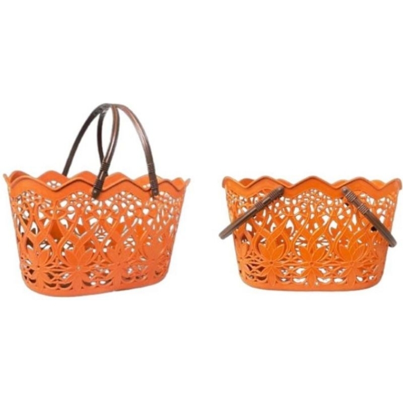 Warna coklat estetik Dengan detail anyam motif Bunga Ukuran : 36CM x 22 cm x 20 cm Bisa digunakan untuk keranjang sabun , keranjang Souvenir snack atau untuk yang lain Free packing kardus ya Kaka
