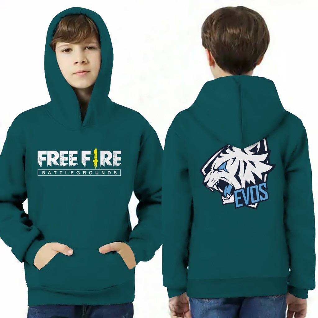 Jumper Hoodie Anak FREEFIRE EVOS II Jaket Hoodie Anak Viral Bahan Fleece Sz M - XL ( Laki Laki & Peremepuan )