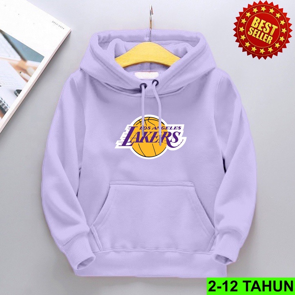 Jumper Hoodie Anak LAKERS II Jaket Hoodie Anak Viral Bahan Fleece Sz M - XL ( Laki Laki & Peremepuan )