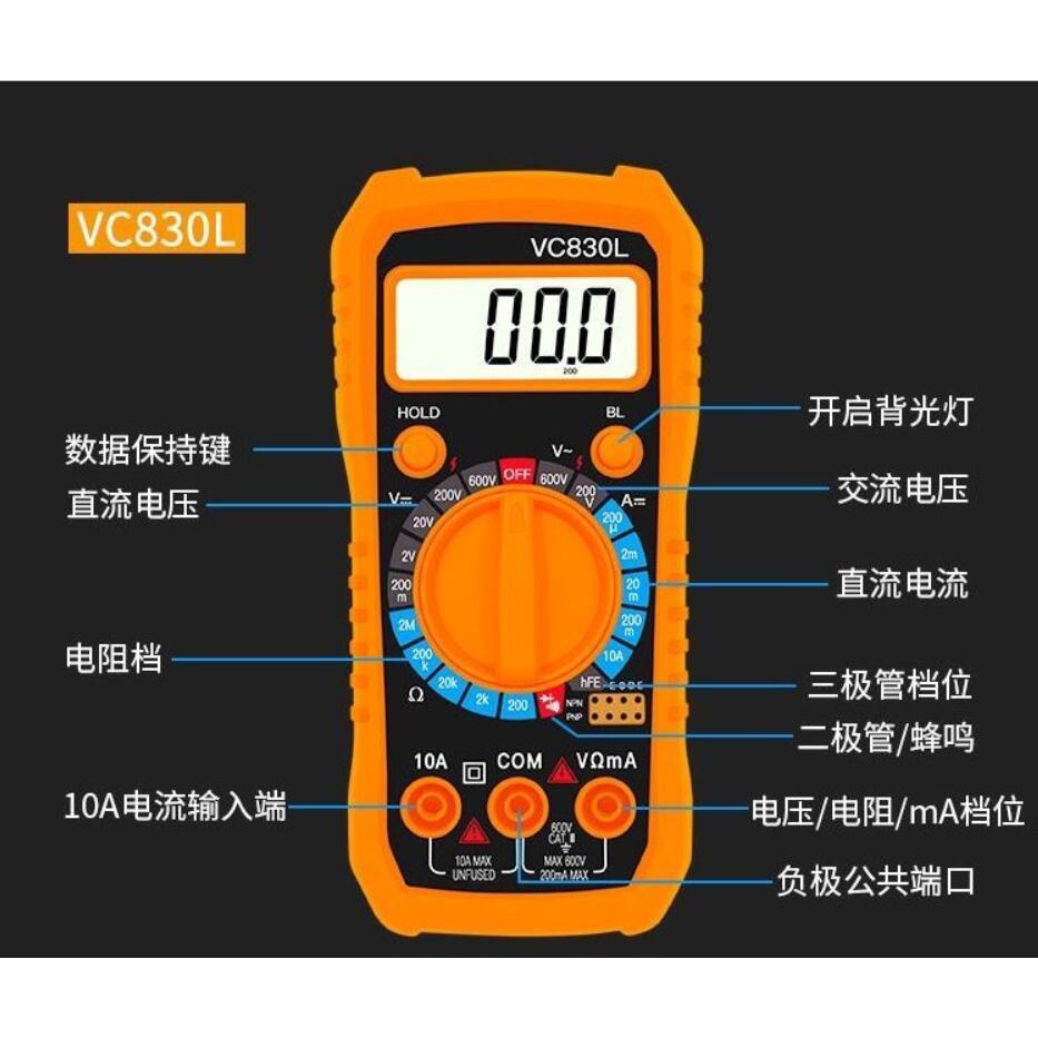 Auto Ranging on All Functions Digital Multimeter XL830L ini dapat digunakan untuk tes tegangan AC/DC voltage, AC/DC current, resistance, capacitance, diode, continuity testing, frequency dan lainnya