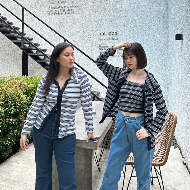 Juni Long sleeve stripe Cardigan// Rp. 89.000 One set of inner and outer blouse