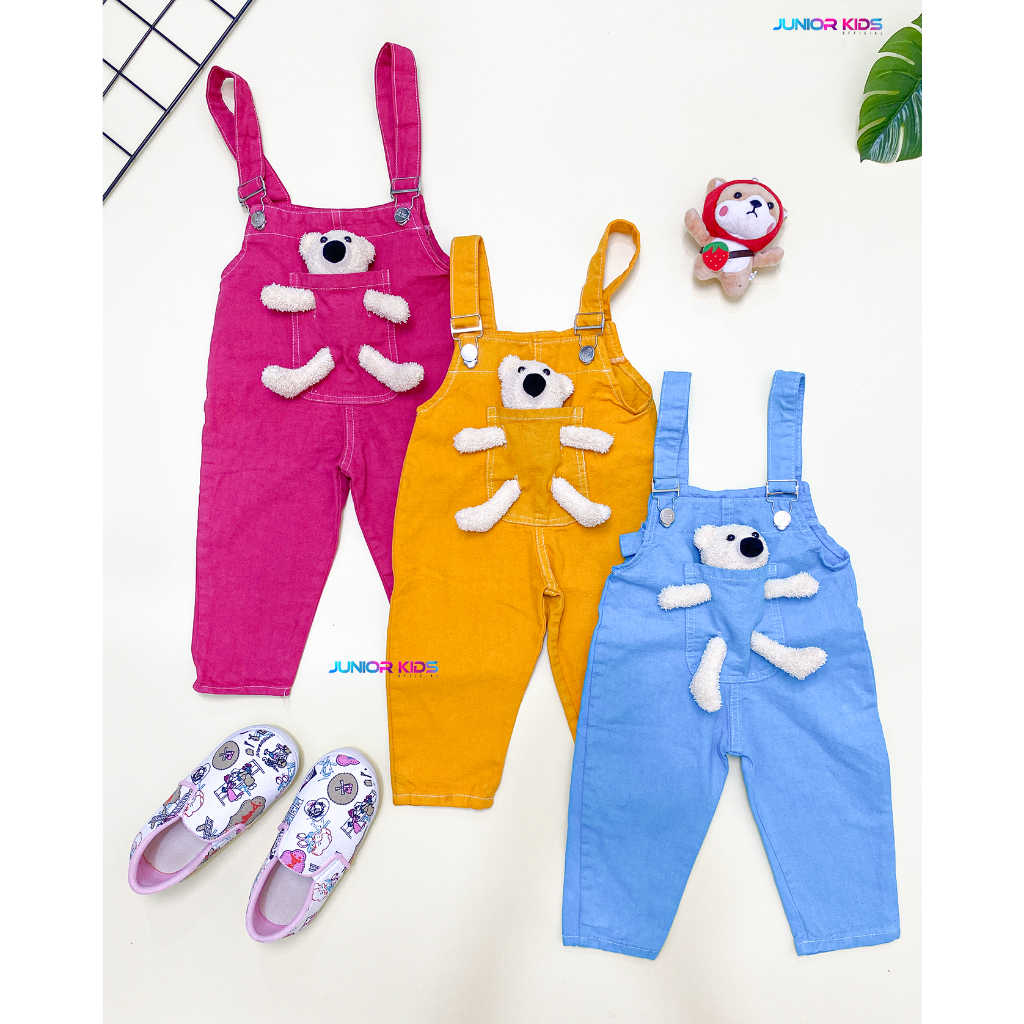 Detail Junior Kids - Overall Boneka Bear Anak Perempuan Usia 1-6 Tahun Warna Biru Kuning Pink