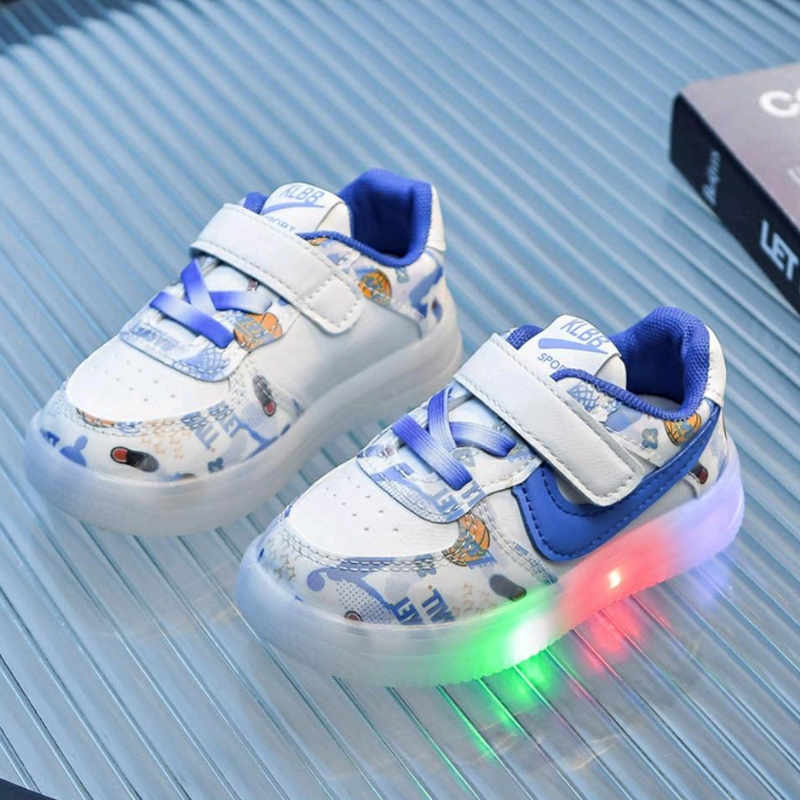 Detail Juragan Junior [COD] Sepatu KOSARKA Lampu LED Import Size 21-30 Usia 1-5 Tahun