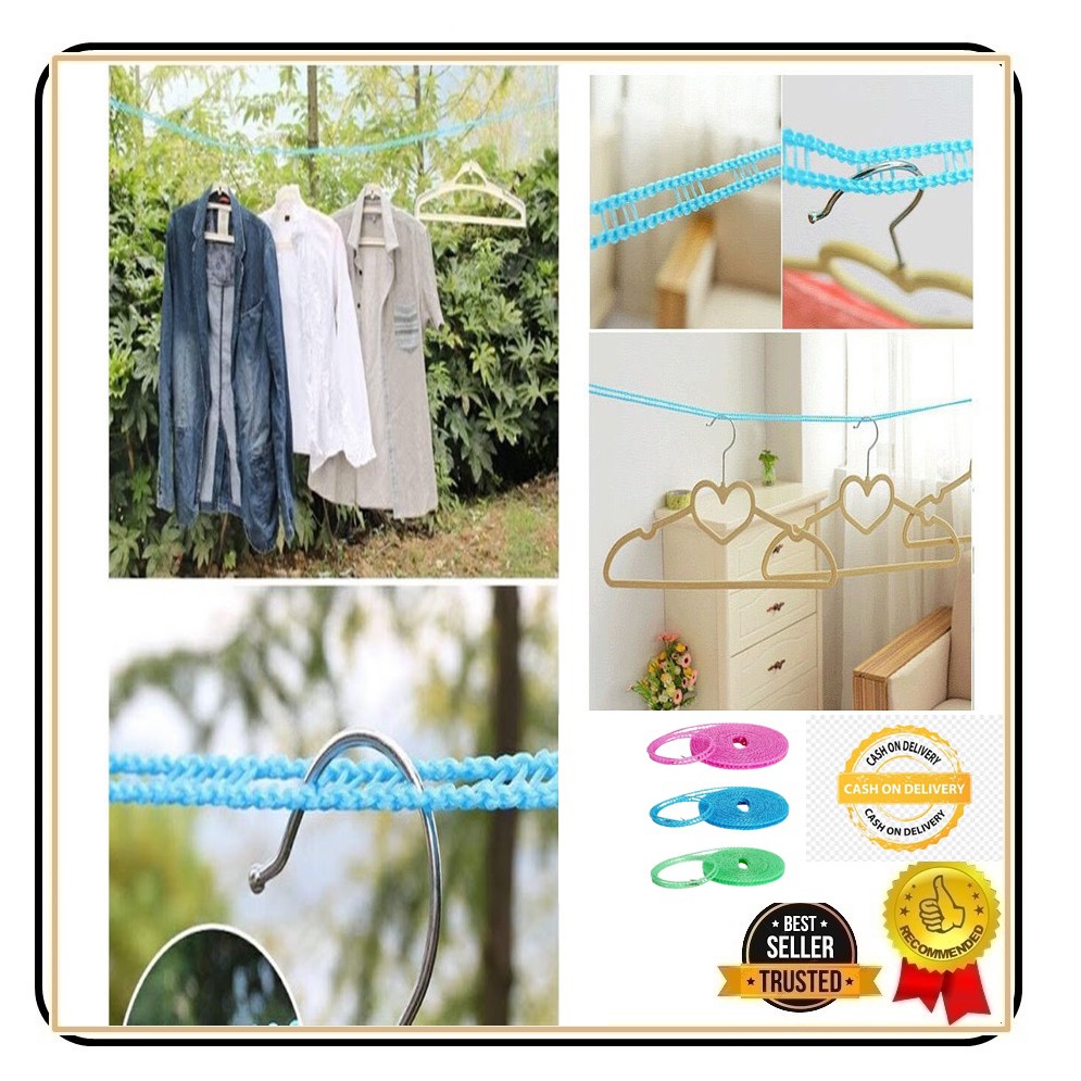 Tali gantungan jemuran dengan ukuran panjang 5 Meter, Di sepanjang tali terdapat lubang untuk gantungan baju, ujungnya terdapat kait stainless steel untuk meluruskan tali jemuran, Selain dipakai untuk jemuran baju, tali ini bisa juga dipergunakan di dalam ruangan sebagai tali gantungan baju atau dibawa untuk berpergian dan saat berkemah di luar ruangan.