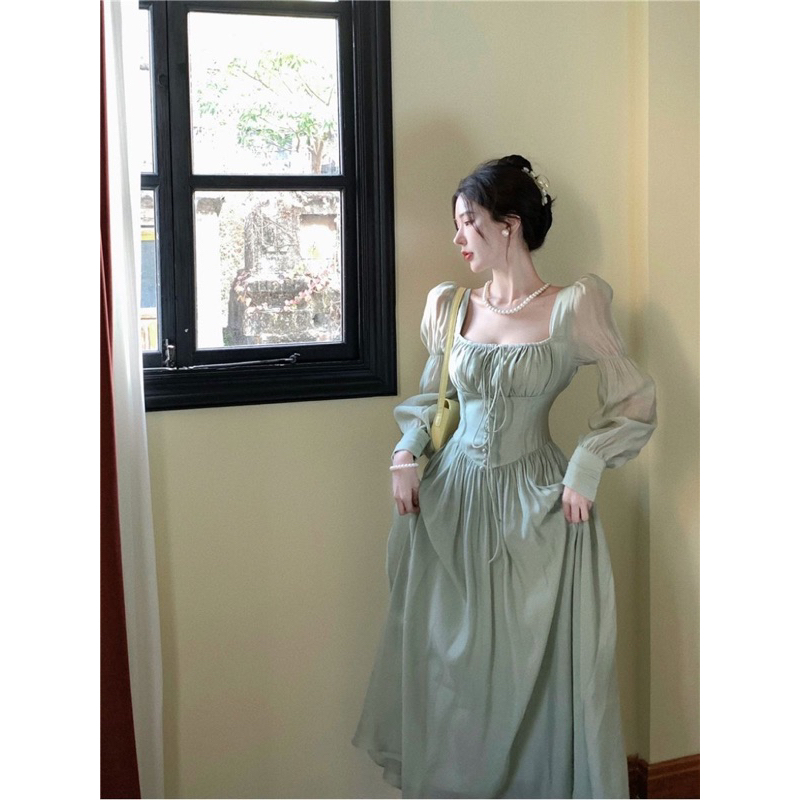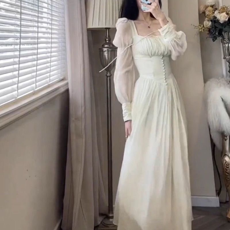 Detail [ Retro Series ] Thousand Buttons Square Neck Korean Chiffon Yearbook Prom Sweet 17 Dress
