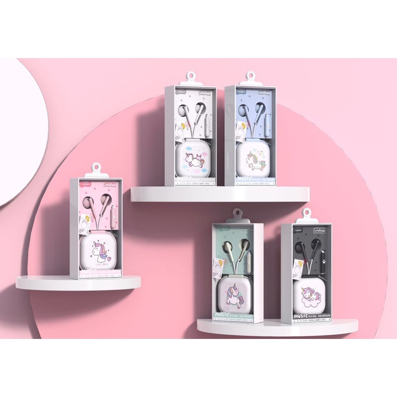 [ KA 192 ] Set Headset Earphone unicorn + Wadah box Earphone Motif