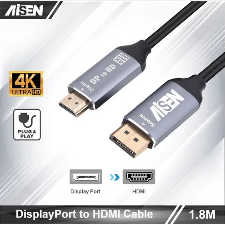 Detail Kabel 4K DP TO HDMI 1.8 Meter Converter Adapter Gold Plated High Quality