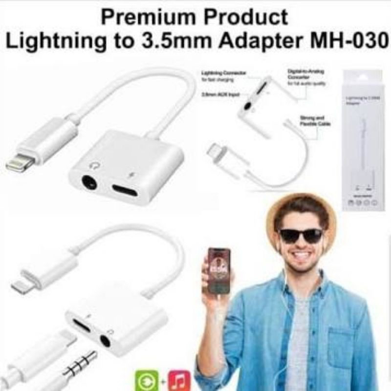 Detail Kabel Adapter Charger Lightning 2 In 1 Jack Audio 3.5mm 2 In 1 Adaptor Dual Lightning Audio dan Charger untuk iPhone