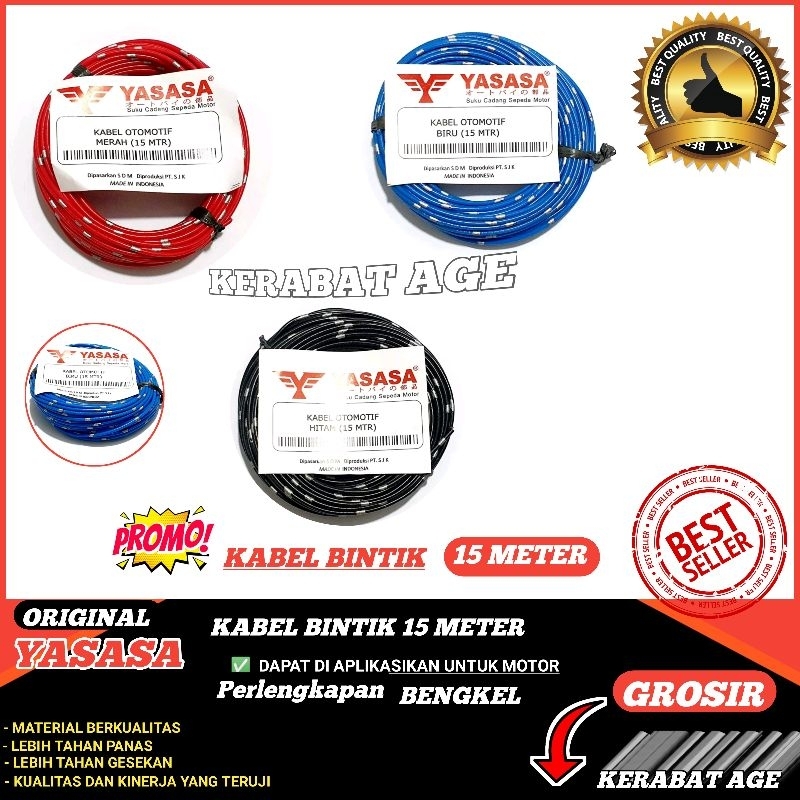 KABEL BINTIK 15 METER MERAH BIRU HITAM