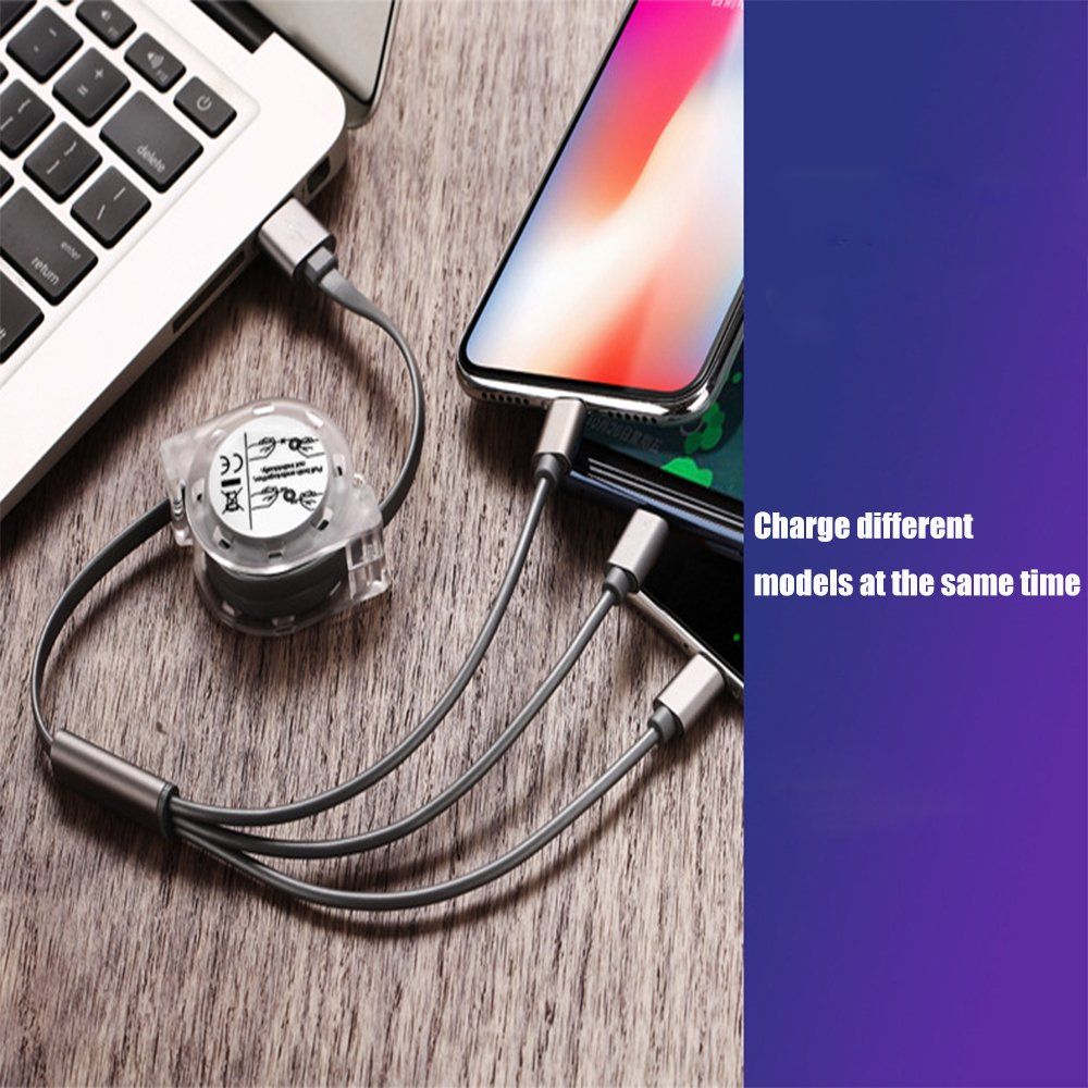 Detail Kabel Charger 3 in 1 USB Type C Lightning Micro Retractable Cable Isi Daya Baterai Berbagai Perangkat Multifungsi