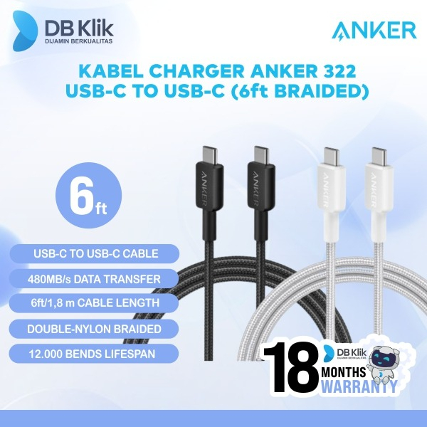 spesifikasi produk Tes lentur: 12.000 kali Kecepatan transmisi: 480 MB/dtk Panjang: 6ft | 1,8 m Dimensi:12 × 6 × 1800 mm Isi: Anker 322 Kabel USB-C ke USB-C