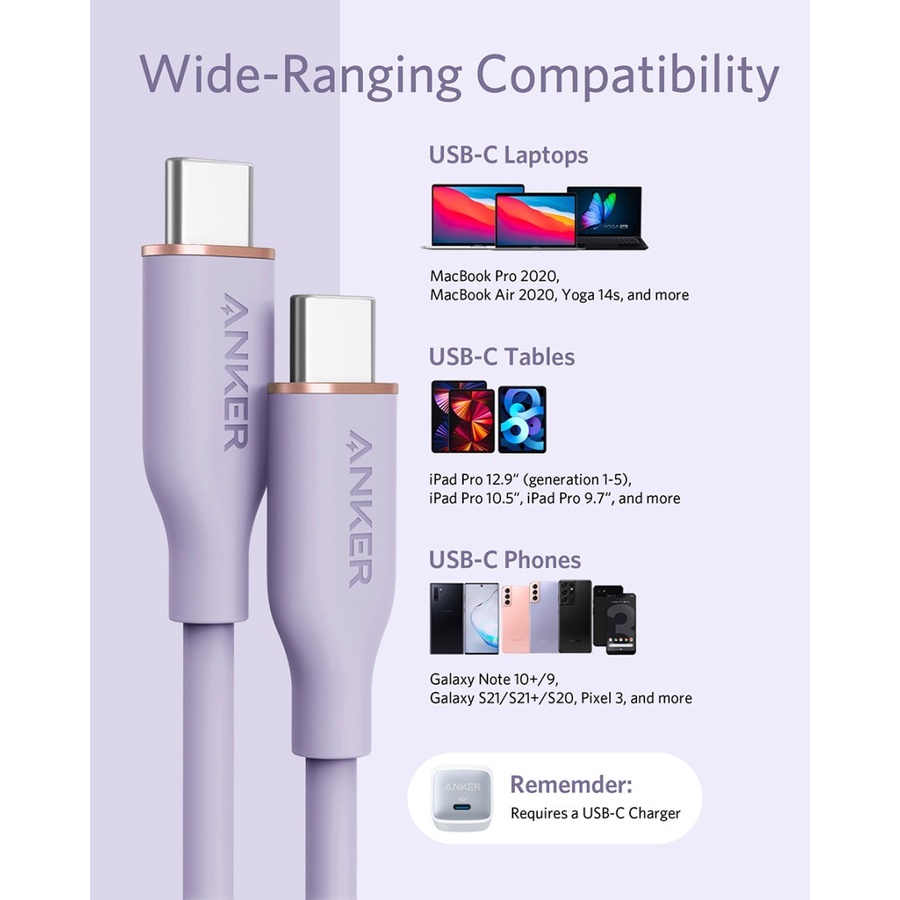 Detail Kabel Charger Anker PowerLine III Flow USB-C to USB-C 3ft A8552