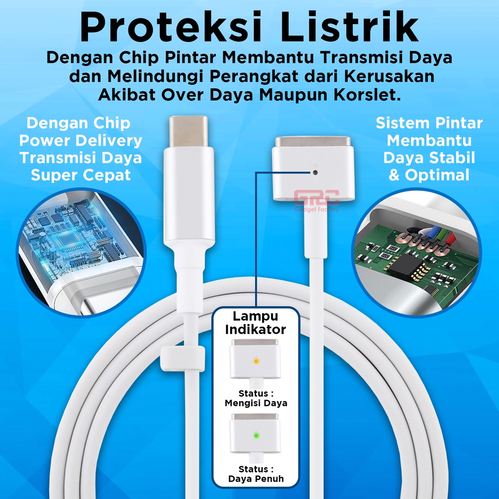 Kabel PD + Converter Type C to Magsafe 2 untuk charger Macbook Pro dan Macbook Air yang support Magsafe 2.