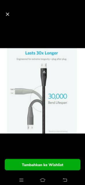 Sangat Tahan Lama Kami menekuk kabel ini lebih dari 30.000 kali dan tidak melihat kerusakan atau perubahan kinerja. PowerLine II + Micro USB mungkin merupakan kabel Nylon Premium Terasa Kuat dan Tidak Kusut paling luar biasa yang pernah Anda lihat.