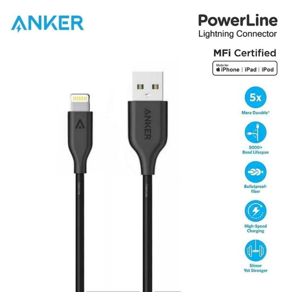 Handphone & Aksesoris > Kabel, Charger, & Konverter > Kabel & Adaptor Handphone > Kabel Data Anker PowerLine Lightning Usb 3ft / 0.9m High Speed Compatible with 13 Pro MAX / 11 Pro / Xs Max / XR / X / 8 / 7 / 6S / 6 / iPad and More