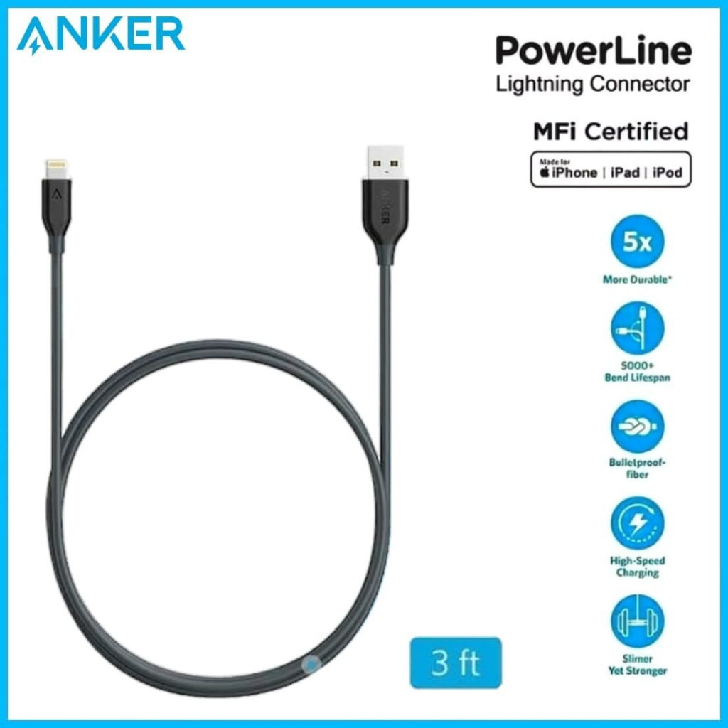 Kabel Data Anker PowerLine Lightning Usb 3ft / 0.9m High Speed Compatible with 13 Pro MAX / 11 Pro / Xs Max / XR / X / 8 / 7 / 6S / 6 / iPad and More