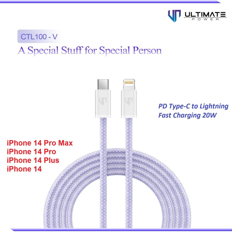 Spesifikasi - Brand : ULTIMATE POWER - Model : CTL100-V - Type-C to Lightning - Current : 20W - Length 1M - Packaging : Ultimate Box