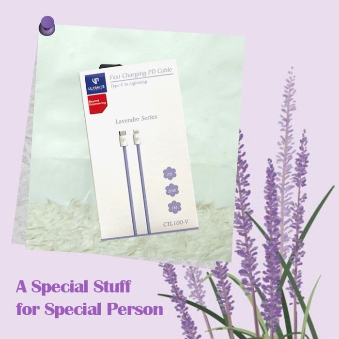 Ultimate Data Cable PD 20W Type-C to Lightning Lavender Series ini memiliki warna soft purple kebiruan yang sangat cantik, cocok untuk semua kalangan. Design cable yang sangat menarik juga membuat produk ini sangat indah dan menawan.