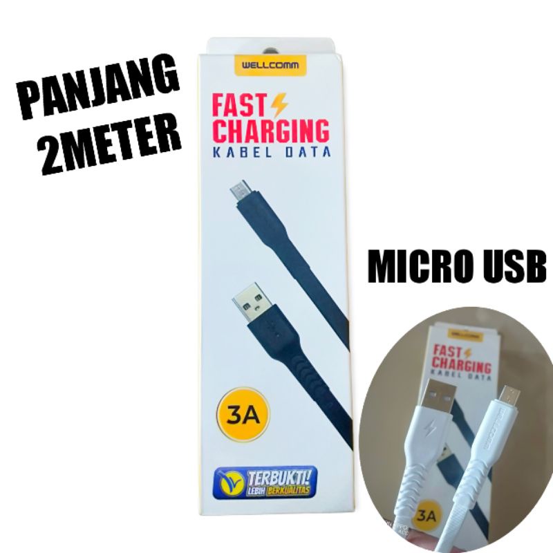 Detail Kabel data charger 2 meter Wellcomm micro USB android 2m fast charging