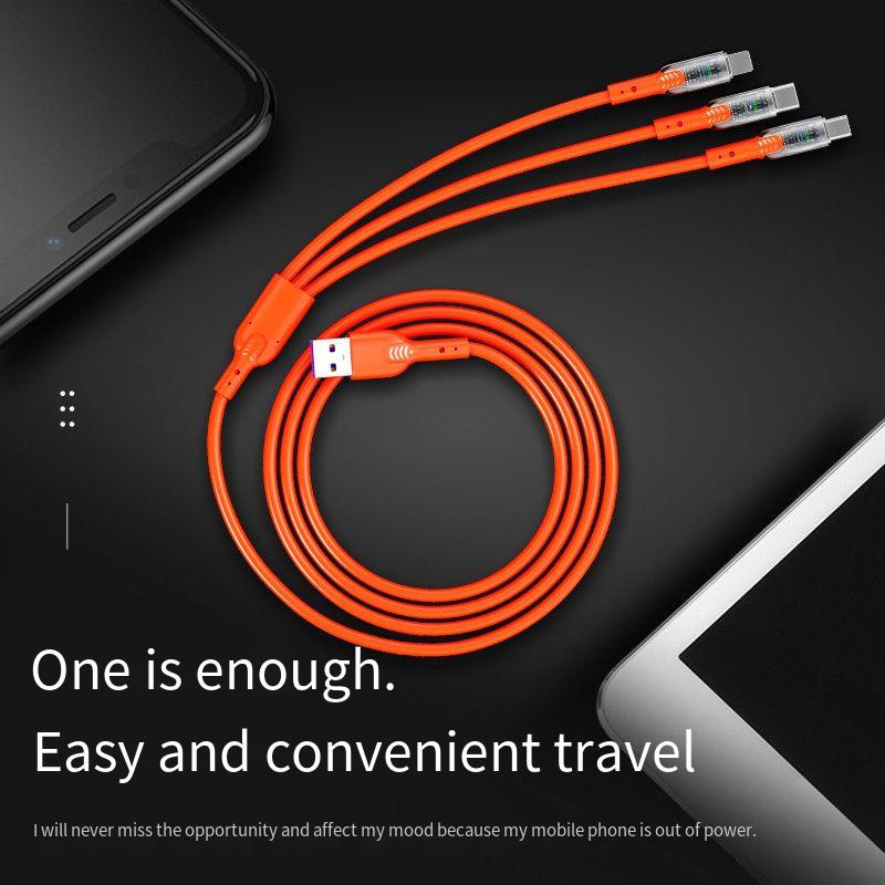Handphone & Aksesoris > Kabel, Charger, & Konverter > Kabel & Adaptor Handphone > Kabel Data Charger Lampu Indikator Transparan Pengisian Cepat 3A 3in1 Cocok Untuk Huawei Samsung Xiaomi iPhone Charging Cable