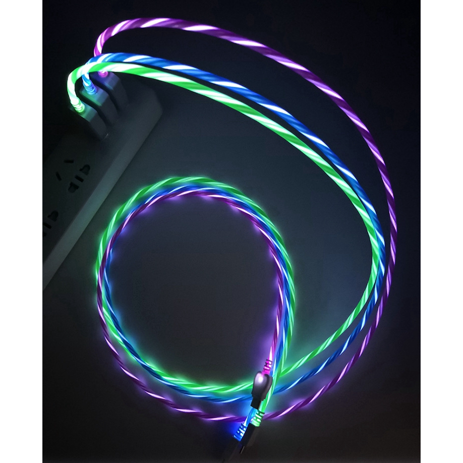 100% brand new and high quality Connects your phone to computer's USB Port for efficient syncing and charging Connects to the USB power adapter for charging from a wall outlet Support QC 3.0, provide fast and safe charging Make an ordinary countertop, desktop or car interior come alive while charging with this cable With visible flowing blue light, brings fun to the ordinary charge and makes charging be easily done while at night Specification: 1. Length: 1m 2. Interface: Type C/Micro USB 3.Colors: blue/green/hot pink/multicolor 4. Features: led cable, flowing all the time when charging the phone
