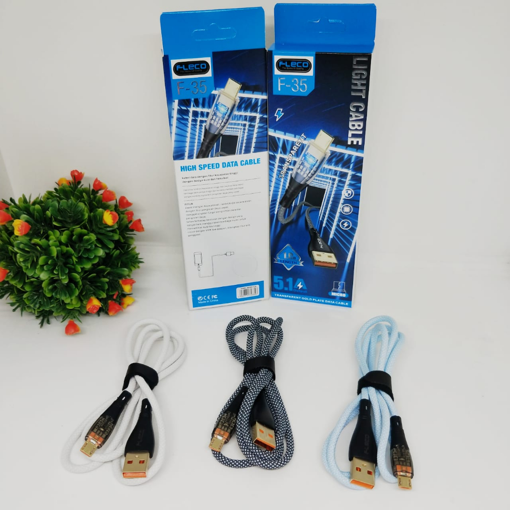 Handphone & Aksesoris > Kabel, Charger, & Konverter > Kabel & Adaptor Handphone > Kabel Data Fleco F-35 Original Full IC Transparan Super Light Cable 5.1A Fast Charging High Speed for Android iOS Smaprtphone
