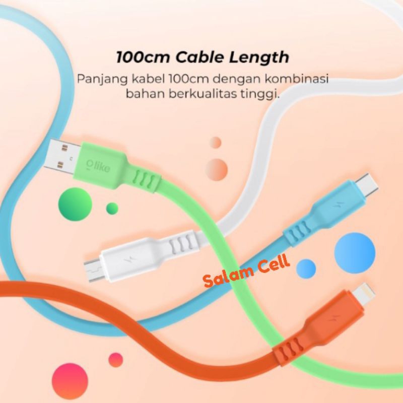 OLIKE DATA CABLE LIGHTNING (D202L) Anti-Tangle Cable 2.4A Fast Charging Stable Current Length: 100 cm Material: Soft Silicone Type: Type-C, Lightning Color: Mix Colour