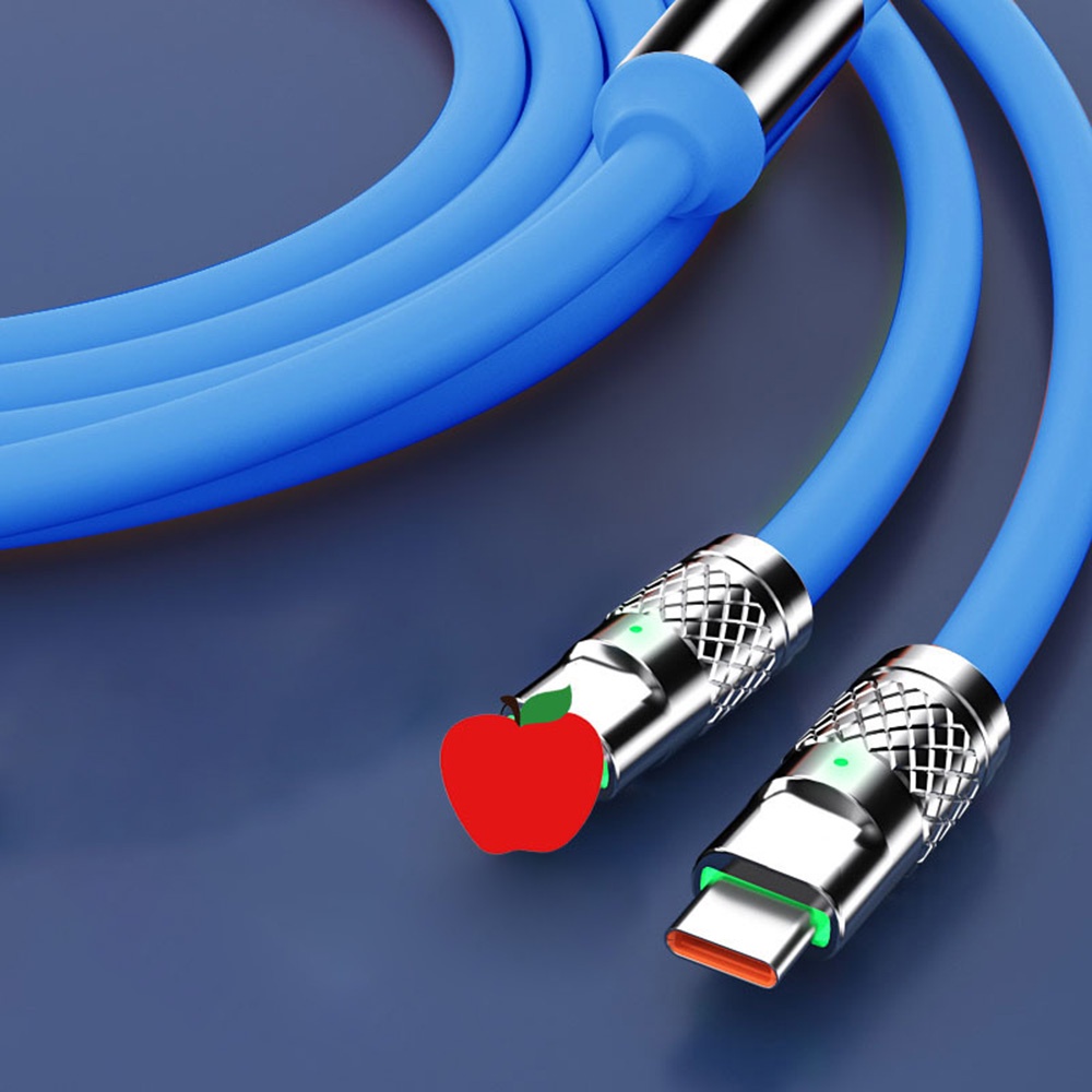 Kabel Data Pengisian Super Cepat 120W 2-in-1 6A Cocok Untuk Kabel USB Typec Apple Dengan Lampu Indikator