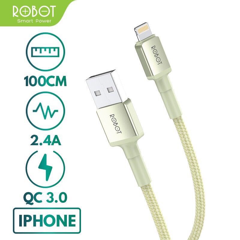 Handphone & Aksesoris > Kabel, Charger, & Konverter > Kabel & Adaptor Handphone > Kabel data Robot Lightning RSL100 2.4A
