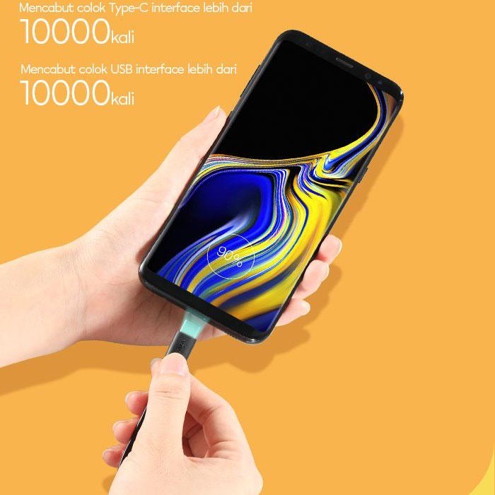 Keunggulan: 1.Kecepatan yang sangat stabil 2.Arus 2.4A Mengisi daya lebih cepat 3.Interface Type C yang Dapat di colok 2 Sisi 4.2 in 1 Mengisi Daya dan transmisi data 5.Tidak Rusak walau di tekuk dan tahan terhadap tarikan 6.Lebih awet dan tahan lama 7.Tampilan seperti baru walau di pakai lama 8.Bahan Ramah Lingkungan dan nyaman di gunakan dikarekana lapisan PVC yang rama lingkungan