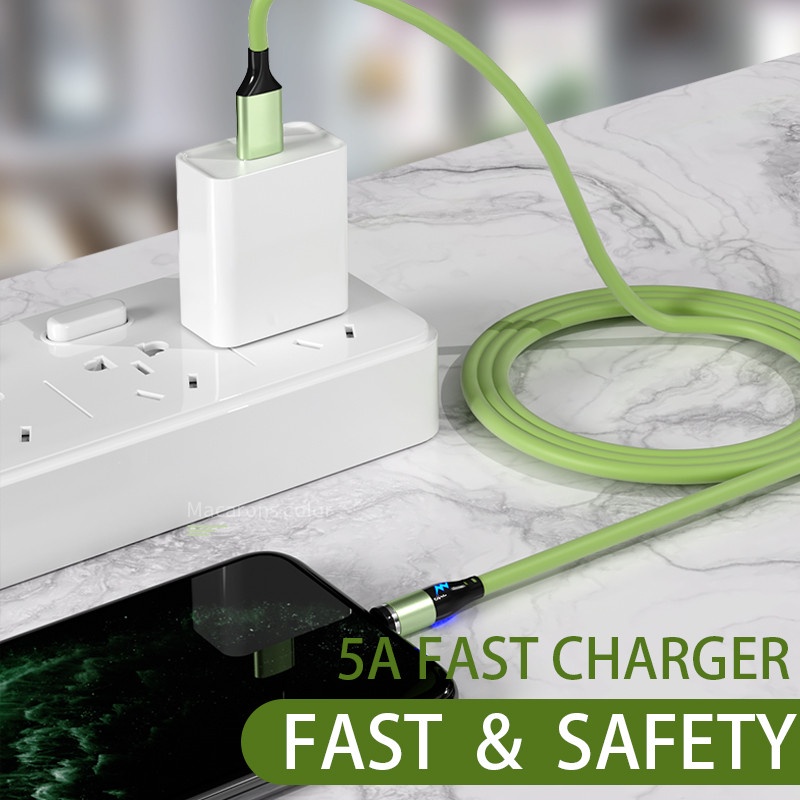 Kabel Data Usb Led Magnetik Berputar 3in1 5A Silikon Micro Usb Fast Charging Wire Untuk i-phone Tipe C Android Data Line